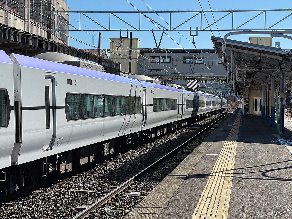 特急あずさが上諏訪駅上りホームを発車していく。